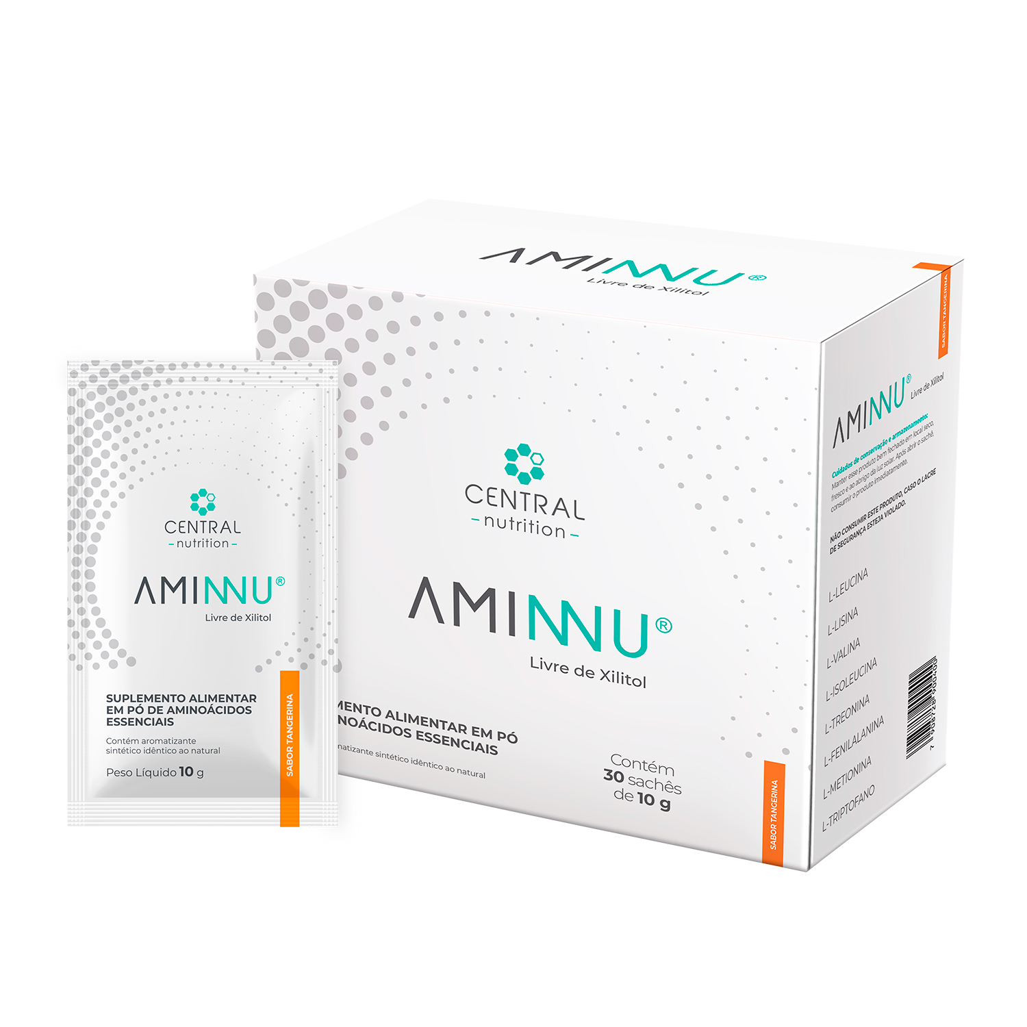 Ingredientes: L-Leucina, L-Valina, L-Isoleucina, cloridrato de L-lisina, L-Fenilalanina, L-Treonina, L-Metionina, L-Triptofano, edulcorantes isomaltulose e glicosídeo esteviol de Stevia rebaudiana Bertoni, acidulante ácido cítrico, aroma idêntico ao natural de tangerina, espessante goma xantana, corante extrato de urucum, base norbixina e antiumectante dióxido de silício.